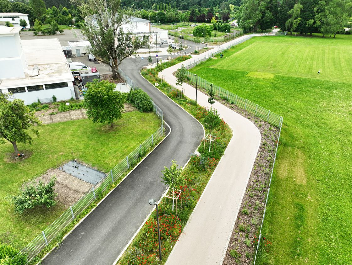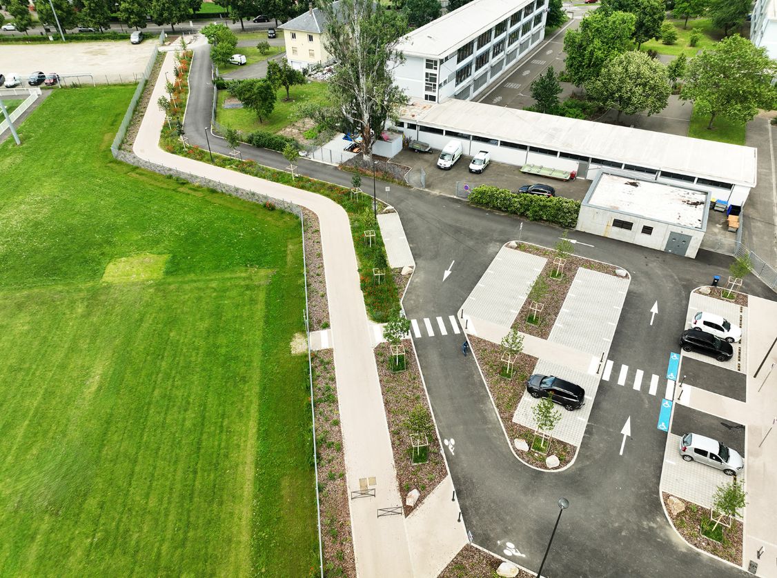Chemin Andrée Chedid et parking devant le gymnase Jean Fischart